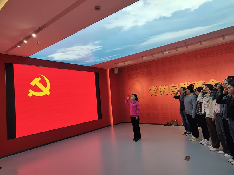 首先,全体党员参观了常州市监察文化馆。该馆通过沉浸式、场景化的展示媒介,以我国监察制度发展沿革为主线,以宣传新时代监察体制改革成果为重点,弘扬优秀传统文化,宣传新时代监察法制。在展厅讲解员的带领下,党员们先后参观了序厅、历史之光、奋斗之光、时代之光和尾厅,了解了中国传统监察文化的历史演变,梳理了党领导下的监察制度探索与发展历程,感受到了全面从严治党的新时代风貌。最后,在庄严的党旗下,教师党员们重温入党誓词,砥砺前进初心。