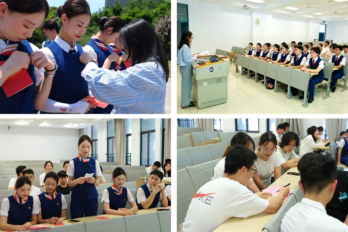 仪式后半段在教室进行。宋吉娜解读《中国共产主义青年团纪律处分条例(试行)》,结合校纪校规与航空业特点强调纪律重要性,强化红线意识。学生兼职团委副书记邓婵玉讲授“追寻先辈足迹 传承红色基因” 主题团课,引领新团员学习革命精神,坚定理想信念。