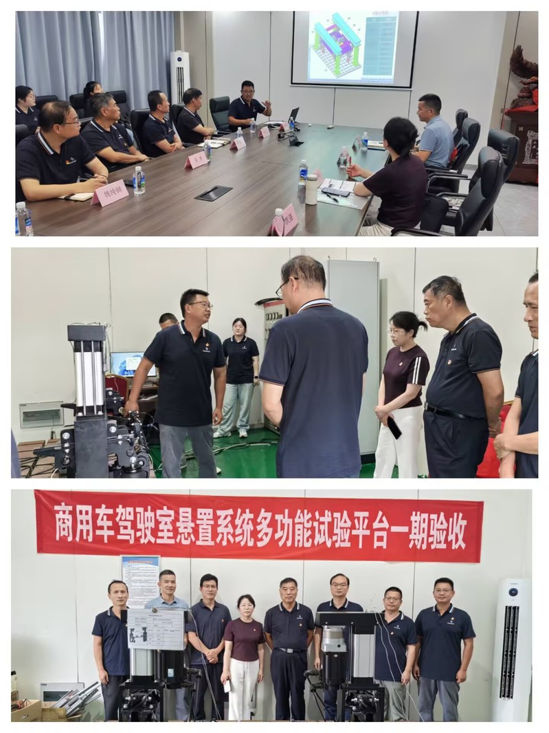 汽车工程学院和江阴圣世杰机械制造有限公司合作的科技攻关项目“商用车驾驶室悬置系统多功能试验平台”,由支部党员李凯强和王树磊两位博士领衔,目前已完成了一期建设。李凯强简要汇报了一期建设成果,重点介绍了平台在结构设计、功能模块和试验能力等方面的创新点。随后大家一起到试验平台现场认真观看了测试,企业领导对项目平台在设备调试、数据采集等技术环节的关键性突破表示非常满意,后期还将加大投入,将平台功能模块由双缸增加为四缸。