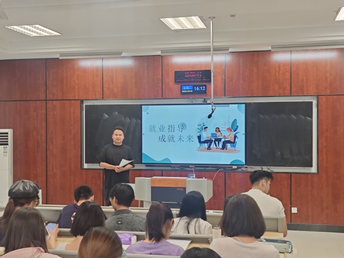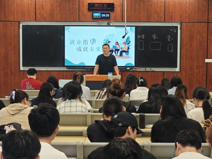 郭峥春围绕就业形势与就业准备展开讲解,用数据和案例剖析就业市场环境,让同学们认清机遇与挑战,并从提升专业技能、积累实践经验、培养职业素养等方面给出就业准备建议,引导大家树立正确就业观念。李成则详解就业协议签订、补办及毕业去向落实等实务工作,强调就业协议的重要性、签订流程及注意事项,介绍毕业去向登记政策和操作方法,助力同学们顺利完成毕业手续。