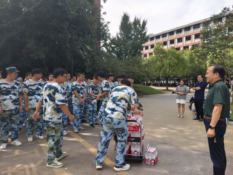 慰问组一行详细了解了训练进展和学生状态,对同学们展现出的顽强意志和优良作风给予高度肯定。学院领导与老师们为同学们分发矿泉水,送去清凉与关怀,鼓励大家磨砺意志、锤炼品格,以饱满姿态完成军训任务。