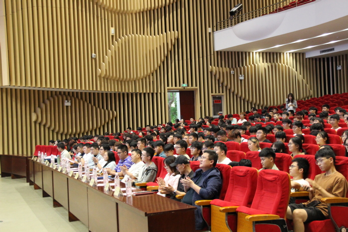 院长胡智喜以《计算机学院的历史和发展》为报告主题,回顾学院发展历程、办学成就,详细介绍学院的学科布局、师资力量、教学资源及人才培养体系。他希望新生传承学院精神,珍惜学习条件,尽快完成角色转变、融入学院大家庭,与学院共同成长进步。