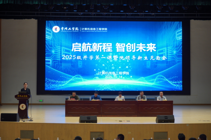 10月14日,计算机信息工程学院在文化艺术中心举办2025级新生开学第一课暨院领导新生见面会,活动以“启航新程・智创未来”为主题。学院党政领导班子、各系部主任、新生班导师、辅导员与全体2025级新生参会,旨在助新生尽快适应大学生活、了解学院发展、科学规划学业生涯,且首次采用线上线下结合形式,覆盖未到场家长及高年级校友。