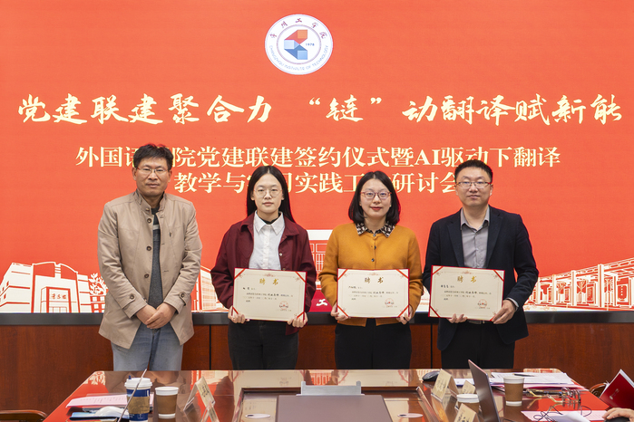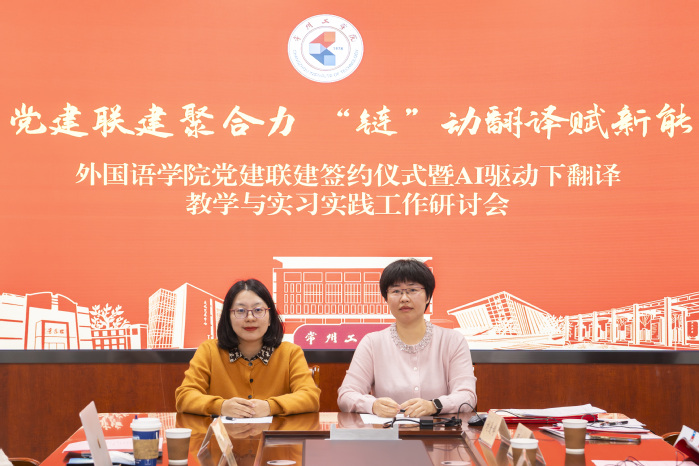 为深入推进产业链党建联建共建,把战斗堡垒建在“链”上、先锋力量聚在“链”上、服务保障融在“链”上,10月24日,外国语学院举行“党建联建聚合力 ‘链’动翻译赋新能”党建联建签约仪式暨AI驱动下翻译教学与实习实践工作研讨会。福州译国译民集团相关负责人、常州工学院机关及外国语学院相关领导、师生代表参会,活动由学院党委书记许文婷主持。