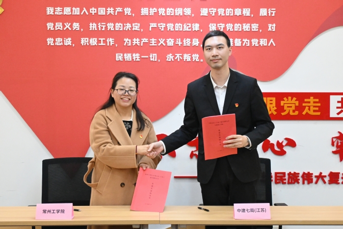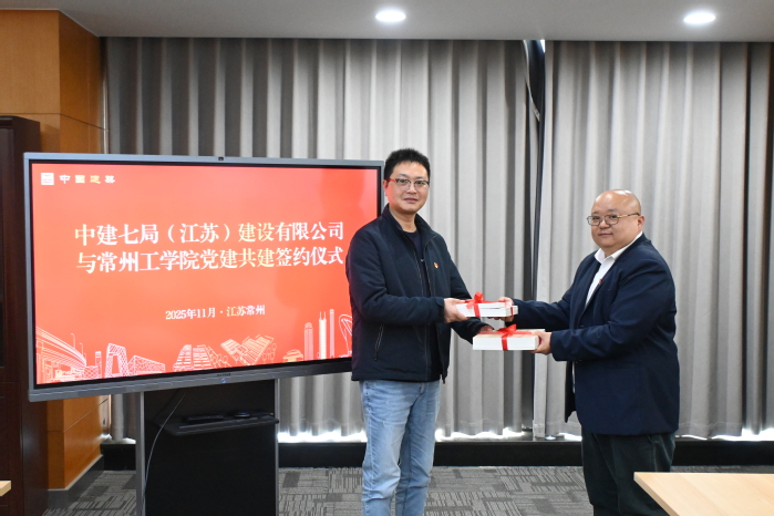 11月28日,土木建筑工程学院与中建七局(江苏)建设有限公司举行党建共建签约仪式,深化校企合作与产学研融合。学院党委书记朱建群、副书记曹其,中建七局(江苏)建设有限公司工会主席陈郁枫、副总经理张文光及双方党员代表参加活动。