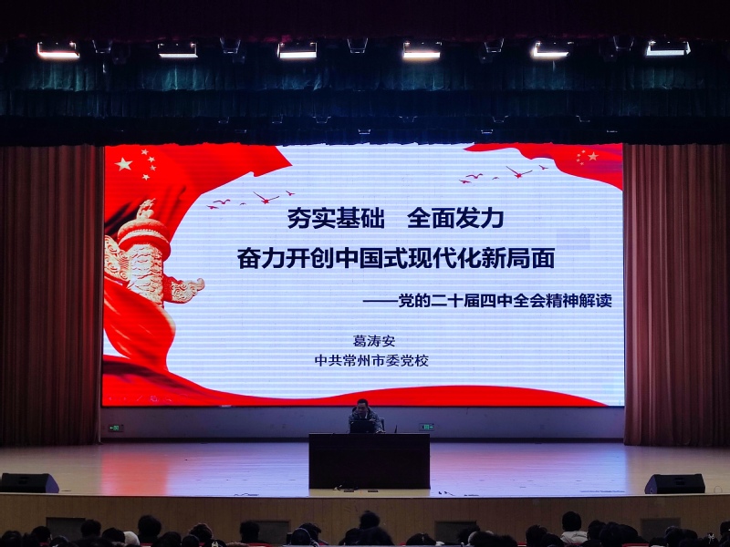 常州市委党校葛涛安教授以《夯实基础,全面发力,奋力开创中国式现代化新局面》为题,深入解读党的二十届四中全会精神,系统阐释“十五五”时期经济社会发展的指导方针、主要目标和重点任务,帮助学员深刻把握中国式现代化的实践路径;校纪委办副主任陆雅君围绕《严守纪法规矩,筑牢廉洁防线》作专题讲座,结合《中国共产党纪律处分条例》核心要求,通过典型案例剖析,引导学员知敬畏、存戒惧、守底线。