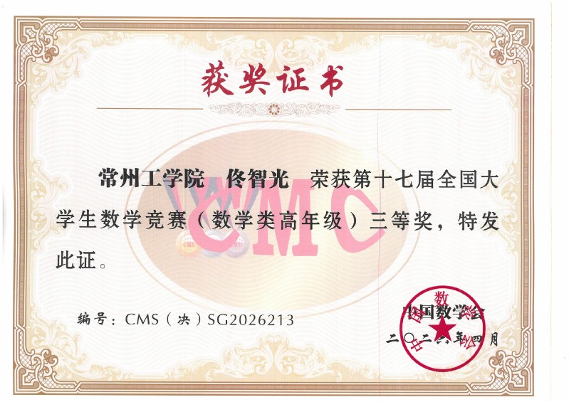 4月17日至19日,第十七届全国大学生数学竞赛决赛圆满落幕。我校理学院2022级数学与应用数学专业佟智光同学在指导教师黄星、陈荣军的悉心指导下,凭借扎实的专业功底和出色的临场发挥,荣获数学专业组国家级三等奖。这一成绩不仅实现了我校在该项赛事全国决赛中获奖零的突破,更是继2024年首次闯入非数学专业组(2020级应用统计专业朱治戎)决赛并获奖后,我校在全国大学生数学竞赛史上树立的又一座里程碑。